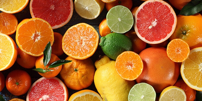 Antioxidantii din pomelo sustin procesul de vindecare a ranilor, prin impulsionarea nivelului de colagen din piele si a flexibilitatii tesutului cutanat. Mandarinele sunt si ele o sursa pretioasa de antioxidanti, precum narigenina si luteina, iar fructele de lime contin riboflavonoina, cu efecte benefice asupra respiratiei si a digestiei. Polifenolii din portocale reprezinta o buna protectie impotriva infectiilor virale.