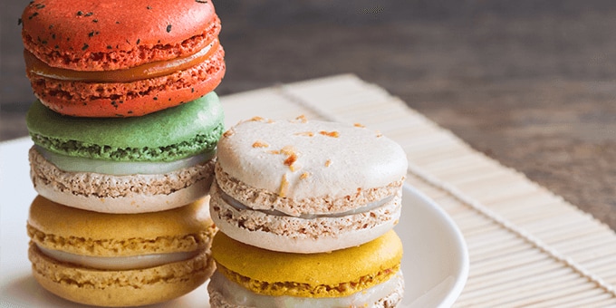Incalzim cuptorul la 150 de grade Celsius. Albusurile impreuna cu zaharul tos, sarea si vanilia se mixeaza timp de 10 minute, la inceput la viteza medie, apoi o crestem,  pana ajungem la ultima treapta de viteza. Rezultatul trebuie sa fie o compozitie tare, care sa stea in tel. Peste ea, se cerne faina de migdale si zaharul pudra apoi se amesteca folosind o spatula si miscari de sus in jos pana compozitia este bine incorporata. Compozitia se pune intr-un pos si se se spriteaza in forme rotunde de circa 3 cm diametru pe tava pe care se asaza in prealabil hartie de copt. Tava se lasa afara, pe blat, timp de 45 de minute si apoi se coace in cuptorul preincalzit pentru 15, maximum 20 de minute.