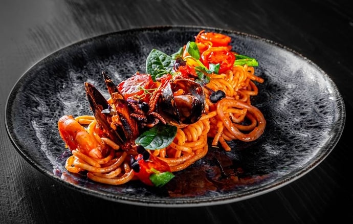Deliciosul sos marinara se potriveste perfect cu savoarea fructelor de mare, totul pe un pat de paste gatite perfect, al dente.