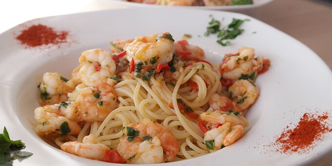 Asa cum te-ai obisnuit deja din retetele anterioare, mai intai de toate pune apa sa fiarba si in momentul in care incepe sa clocoteasca, adauga pastele in ea. Separat, poti decortica crevetii, inlaturand mai intai capul crevetelui, apoi carapacea si intestinul. Resturile ramase nu trebuie aruncate, ci pune-le la fiert in putina apa, cat sa le acopere. Lasa-le sa clocoteasca vreo cateva minute si cand este gata, toarna supa intr-un pahar, separat, pentru ca vei avea nevoie de ea in etapa urmatoare. Cat timp fierb crevetii poti pune intr-o tigaie incinsa uleiul, untul, usturoiul, ardeiul iute tocat marunt. Amesteca usor, timp de 3 minute. Adauga apoi crevetii si lasa-i sa se caleasca 2 minute. Cand crevetii au devenit roz, poti adauga un pahar de supa si lasa totul sa fiarba 3-4 minute. Dupa aceea adauga zeama de lamaie, sare si piper. Amesteca bine si, in final, pune in tigaie pastele si patrunjelul. Serveste pastele cu putin parmezan ras pe deasupra si un pahar cu vin alb.