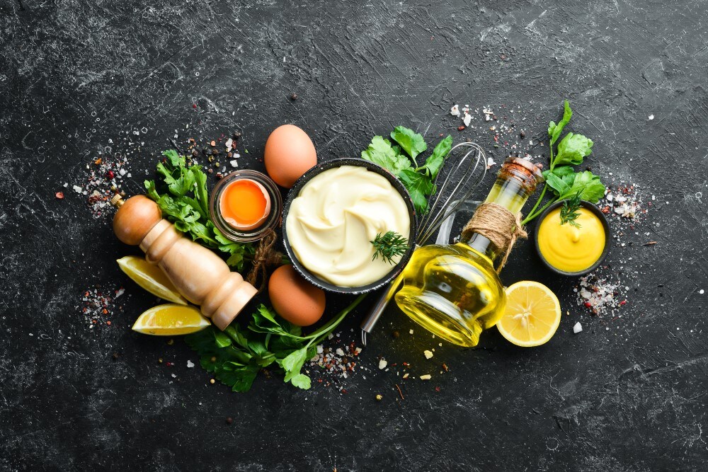Mod de preparare: Într-un castron, pune cele două gălbenușuri, ½ lingură de muștar, un praf de sare și de piper și bate cu un tel, adăugând treptat paharul de ulei de rapiță. Toarnă sucul de lămâie în timp ce continui să amesteci maioneza.